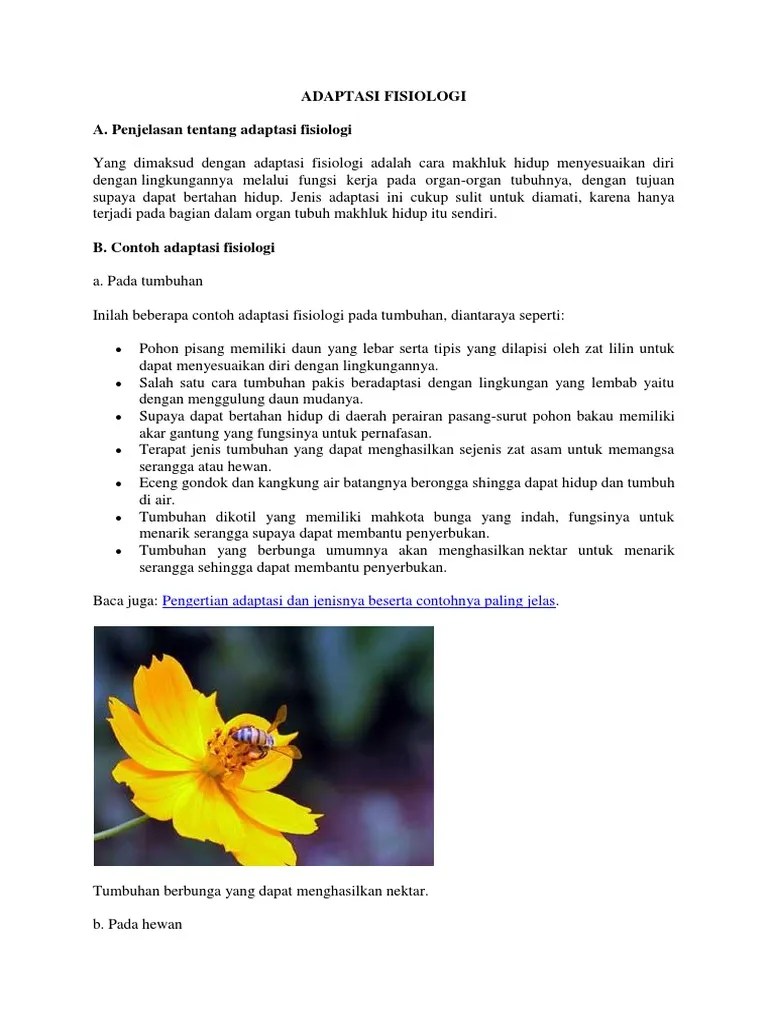 Tak hanya untuk menyesuaikan diri dengan lingkungannya, adaptasi tumbuhan juga. Adaptasi tingkah laku, yaitu penyesuaian terhadap lingkungan dalam bentuk tingkah laku agar dapat mempertahankan hidupnya. 3) adaptasi fisiologi pada tumbuhan. Penyesuaian diri akan selalu dilakukan setiap makhluk hidup dalam merespon suatu keadaan.,hewan,perilaku manusia,macam tumbuhan,ragam,jateng . Beberapa contoh bahwa makhluk hidup mampu beradaptasi , seperti misalnya tumbuhan yang menggugurkan daunnya saat musim kemarau atau disebut .